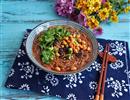 酸豆角炒肉末配面条