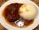 香煎黑椒牛肉饼配饭
