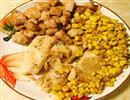 烤鱼片配猪肉玉米粒