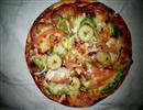 自创黑椒培根火腿果蔬披萨