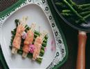 三文鱼金针菇卷佐黑椒芦笋