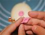 19/24. 取粉色面团做成菱形,四角向内一捏做成耳朵.